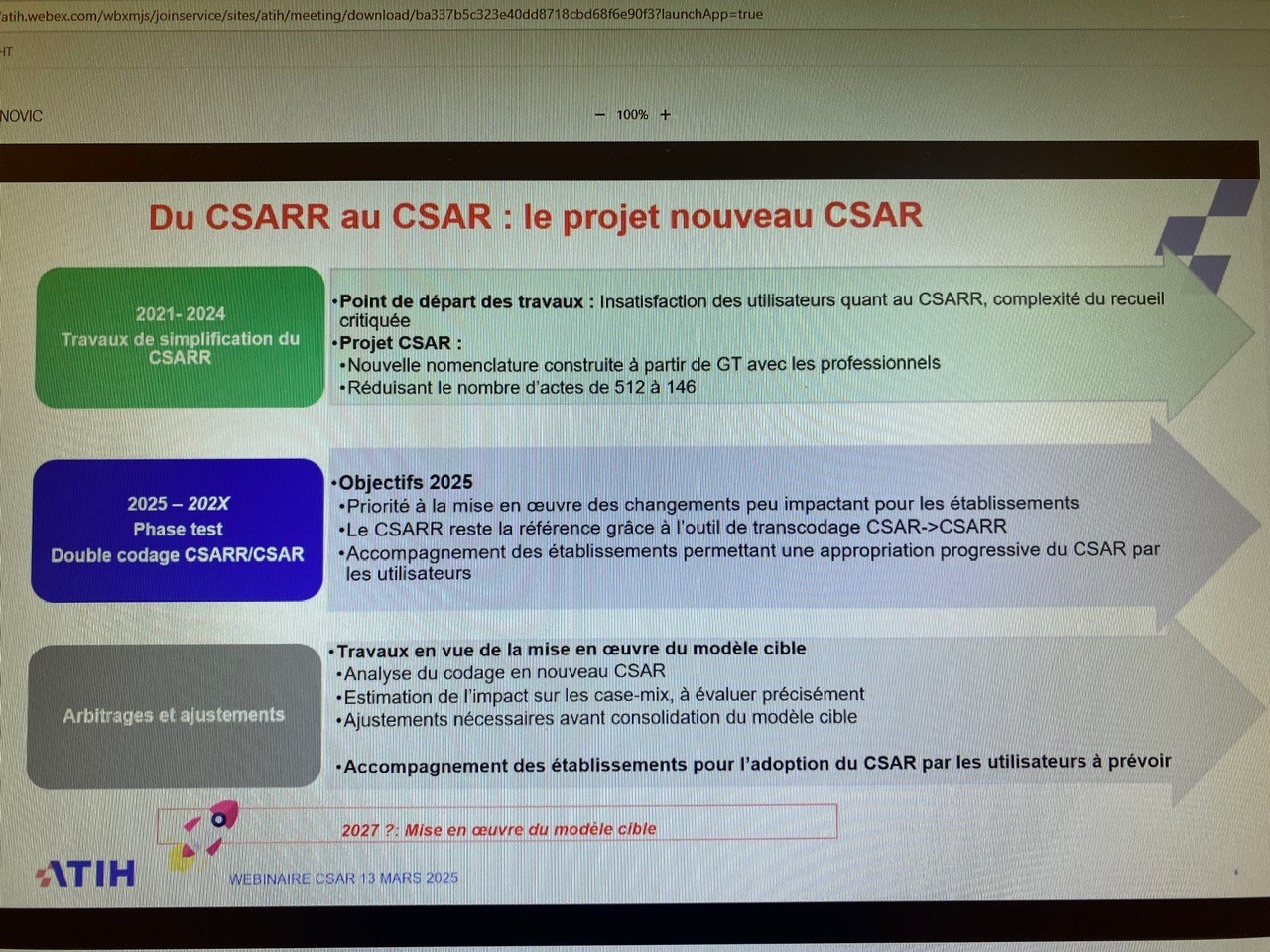 Le 13 mars à 14h00 , l’ATIH proposait un webinaire sur la mise en place du nouveau CSAR
